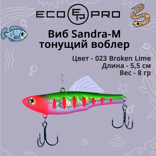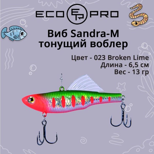 Воблер EcoPro Sandra-M – это тонущий воблер класса «vibration», который подойдет для рыбалки в любых слоях воды.