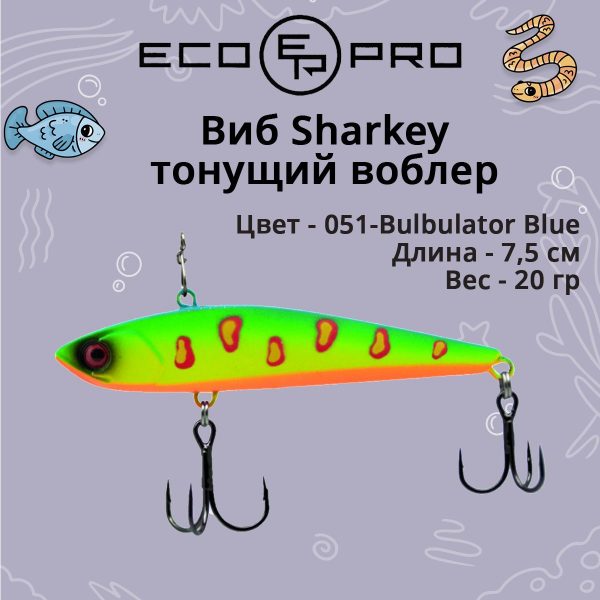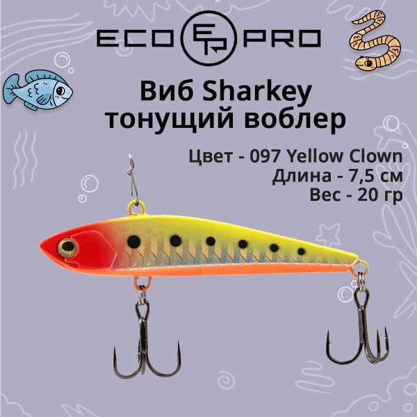 Воблер EcoPro Sharkey – это тонущий воблер класса «vibration», который подойдет для рыбалки в любых слоях воды.