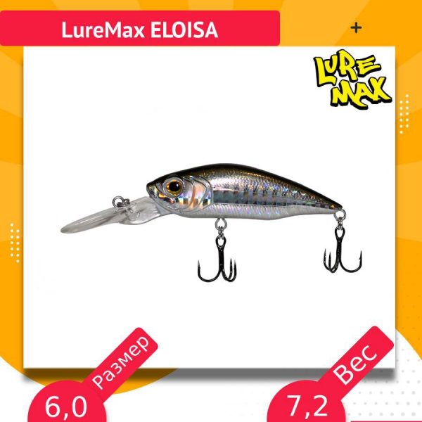 Воблер класса «Shad Deep Runner» и этим всё сказано. Продуманная форма тела и специальная внутренняя балансировка способствуют устойчивой оригинальной игре. Основные способы анимации – проводка с остановками, неагрессивный твитчинг, а также равномерная проводка. Eloisa показала хорошие результаты при ловле троллингом судака и окуня на озёрах Северо-Запада России. Приманка выпускается в двух размерах 60 и 68 мм.