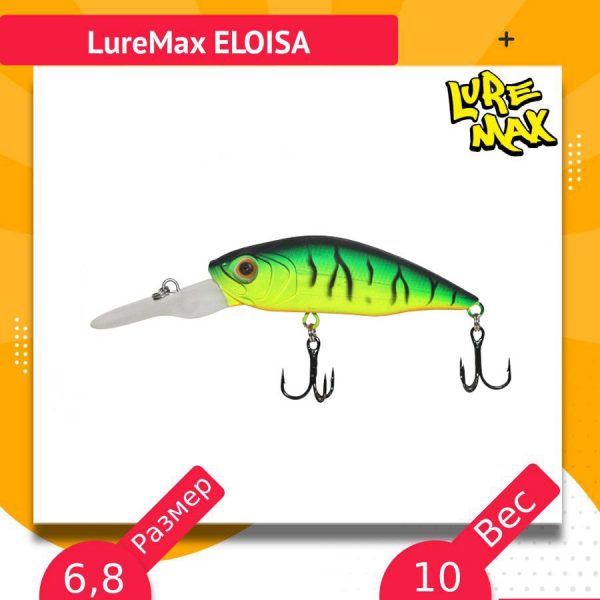 Воблер класса «Shad Deep Runner» и этим всё сказано. Продуманная форма тела и специальная внутренняя балансировка способствуют устойчивой оригинальной игре. Основные способы анимации – проводка с остановками, неагрессивный твитчинг, а также равномерная проводка. Eloisa показала хорошие результаты при ловле троллингом судака и окуня на озёрах Северо-Запада России. Приманка выпускается в двух размерах 60 и 68 мм.