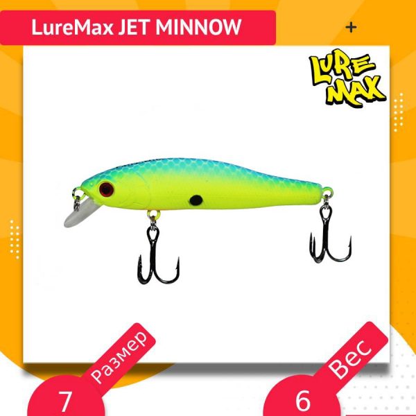 Воблер для рыбалки LureMax JET MINNOW 70SF-003 6 г., медленно всплывающий
