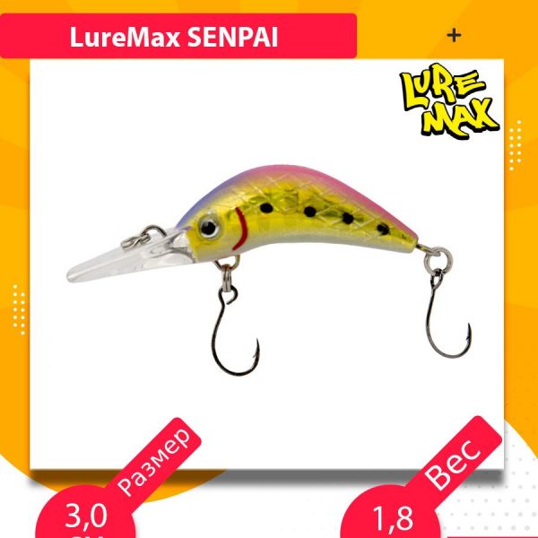 Ультралегкий кренк вытянутый формы. Основное предназначение – ловля форели на платных прудах. Благодоря своей форме, воблер способен не терять свою игру при самой медленой проводке, тем самым провоцируя на поклевку самую осторожную форель. Рабочий горизонт приманки находится в верхних слоях: 0,1-0,5м. Кроме форели,Senpai отлично зарекоменовал себя при ловле некрупных хищников в стоячих водоемах.