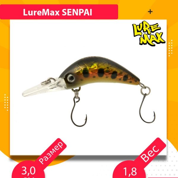 Ультралегкий кренк вытянутый формы. Основное предназначение – ловля форели на платных прудах. Благодоря своей форме, воблер способен не терять свою игру при самой медленой проводке, тем самым провоцируя на поклевку самую осторожную форель. Рабочий горизонт приманки находится в верхних слоях: 0,1-0,5м. Кроме форели,Senpai отлично зарекоменовал себя при ловле некрупных хищников в стоячих водоемах.