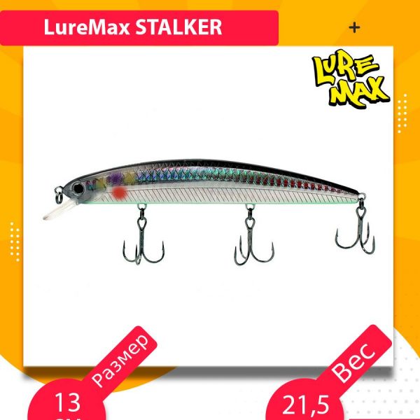 Воблер относится к приманкам класса Big Minnow. Оснащен магнитной системой дальнего заброса с перемещающимся центром тяжести. Это позволяет делать точные забросы на дальние расстояния даже при сильном порывистом ветре. После погружения в воду приманка занимает вертикальное положение головой вверх, напоминая кормящуюся рыбку. Модель предназначена для проводок в стиле твичинг. На рывках Stalker имеет широкую игру «елочкой» с покачиванием боками и зависанием на паузах. Помимо твичинга, воблер обладает привлекательной собственной игрой на равномерной проводке. Отлично подходит для ловли средней и крупной щуки.Приманка оснащена крючками Saikyo Япония.